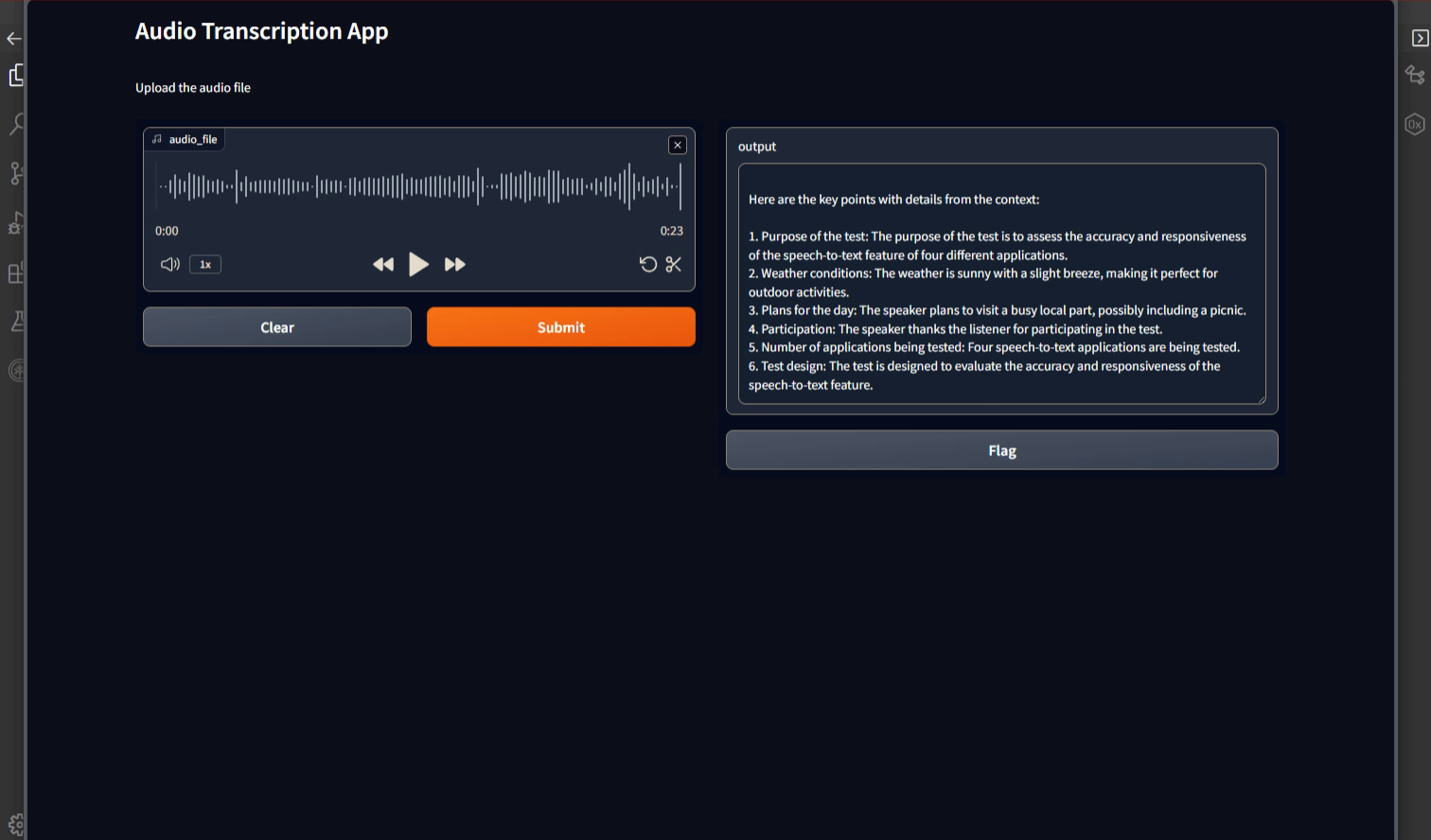 - Transcription Functionality: Developed a transcription function that employs Whisper to convert speech to text, which is then processed for summarization.