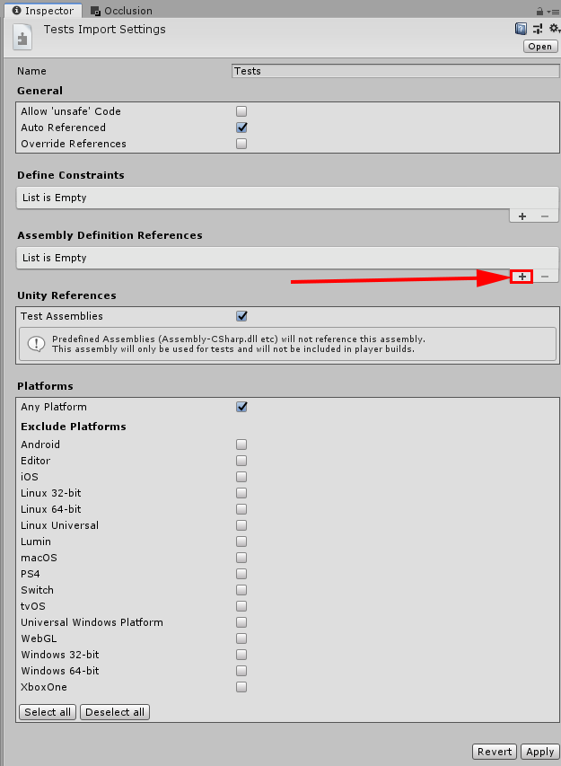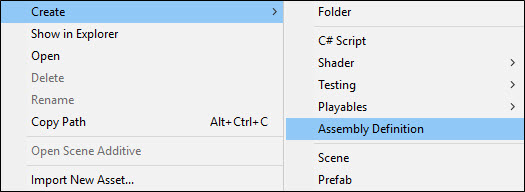 - Create PlayMode Test Assembly Folder